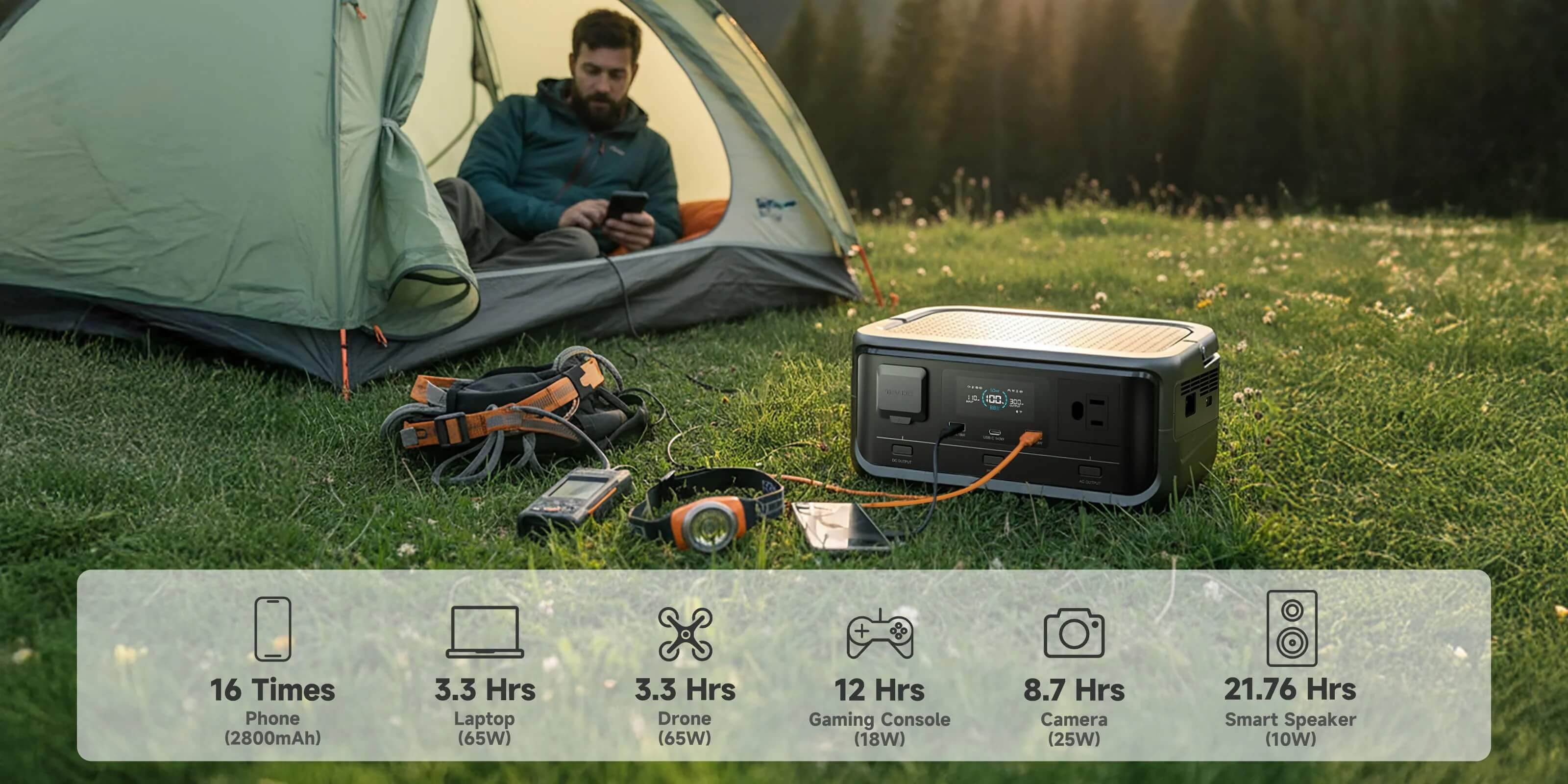 Designed for everyday convenience, the VOLIX P300 offers 1 AC outlet, 2 USB-A ports, 1 USB-C port, and a 12V socket, making it perfect for powering small electronics such as phones, tablets, cameras, drones, lights, and other low-power devices.